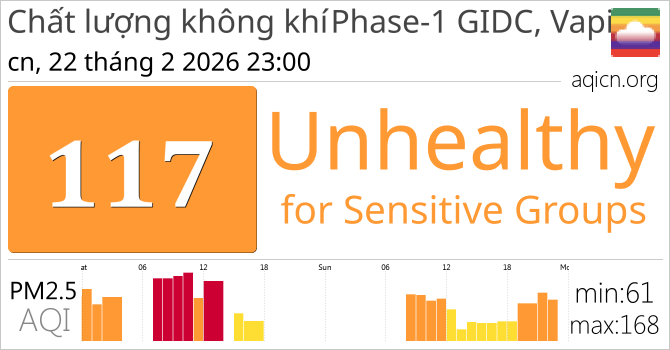 Chất lượng không khí Phase-1 GIDC, Vapi, India Unhealthy for Sensitive Groups
