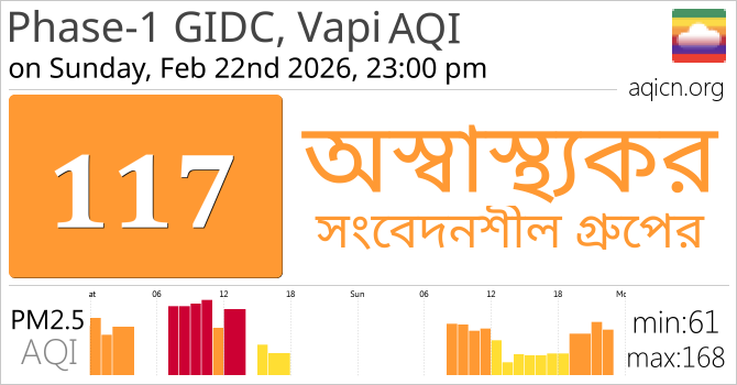 Phase-1 GIDC, Vapi, India-এর বায়ুর গুণমান অস্বাস্থ্যকর সংবেদনশীল গ্রুপের