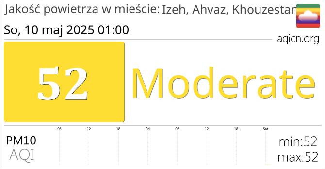Jakość powietrza w mieście Izeh, Ahvaz, Khouzestan, Iran jest Moderate
