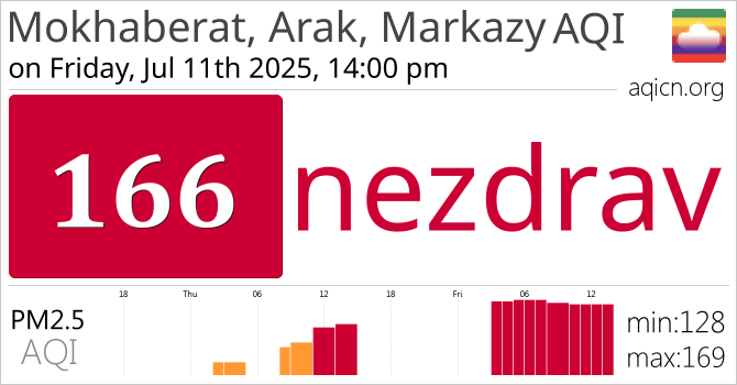 Kvaliteta zraka u gradu Mokhaberat, Arak, Markazy, Iran je nezdrav