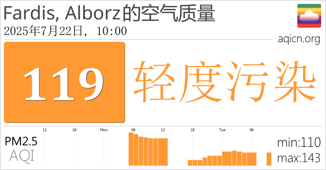 Fardis, Alborz, 伊朗伊斯兰的空气污染指数是轻度污染