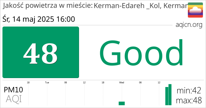 Jakość powietrza w mieście Kerman-Edareh _Kol, Kerman, Iran jest Good