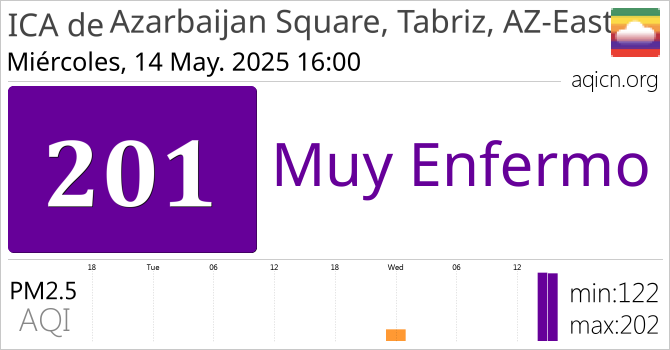 La calidad del aire de Azarbaijan Square, Tabriz, AZ-East, Irán es Muy Enfermo