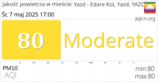 Jakość powietrza w mieście Yazd - Edare Kol, Yazd, YAZD, Iran jest Moderate