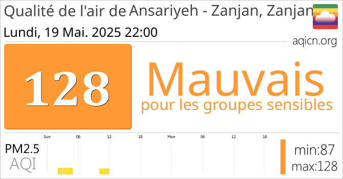 La qualité de l'air à Ansariyeh - Zanjan, Zanjan, Iran est Mauvais pour les groupes sensibles