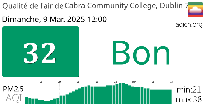 La qualité de l'air à Cabra Community College, Dublin 7, Irlande est Bon