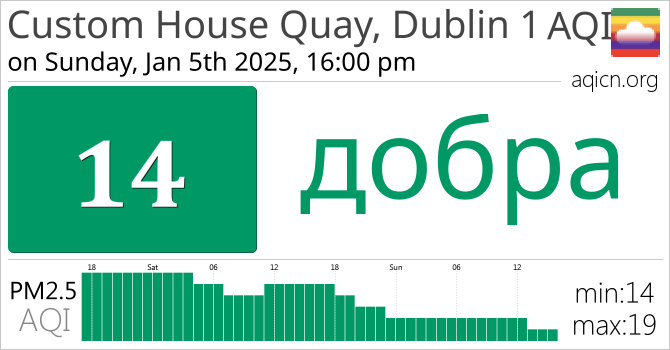Якасць паветра ў Custom House Quay, Dublin 1, Ireland складае добра