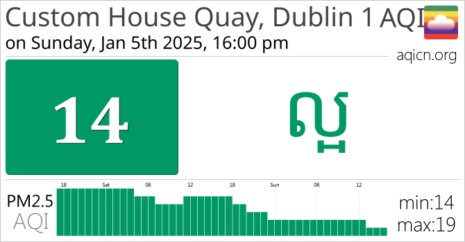 គុណភាពខ្យល់របស់ Custom House Quay, Dublin 1, Ireland គឺ ល្អ