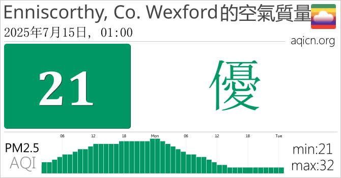 Enniscorthy, Co. Wexford, 愛爾蘭的空氣污染指數是優