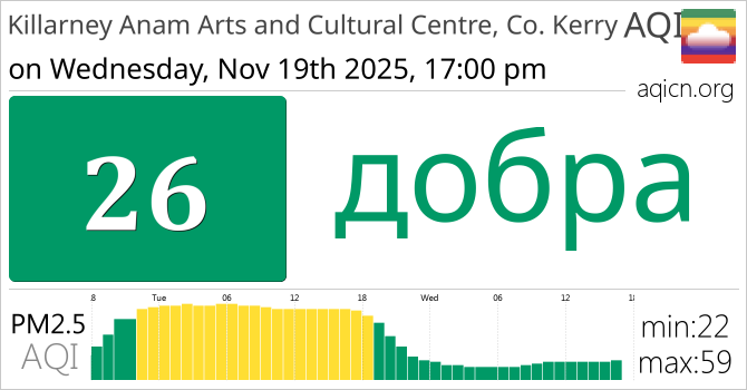 Якасць паветра ў Killarney Anam Arts and Cultural Centre, Co. Kerry, Ireland складае добра