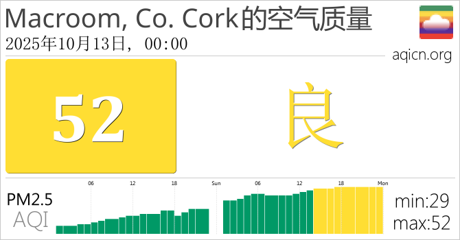 Macroom, Co. Cork, 爱尔兰的空气污染指数是良