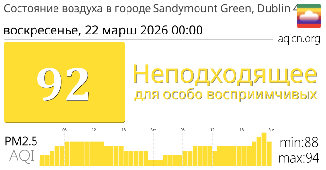 Качество воздуха в Sandymount Green, Dublin 4, Ирландия является Неподходящее для особо восприимчивых