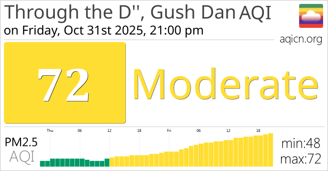 Through the D'', Gush Dan, Israel Air Quality is Moderate