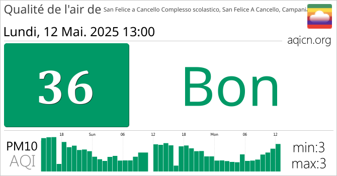 La qualité de l'air à San Felice a Cancello Complesso scolastico, San Felice A Cancello, Campania, Italie est Bon