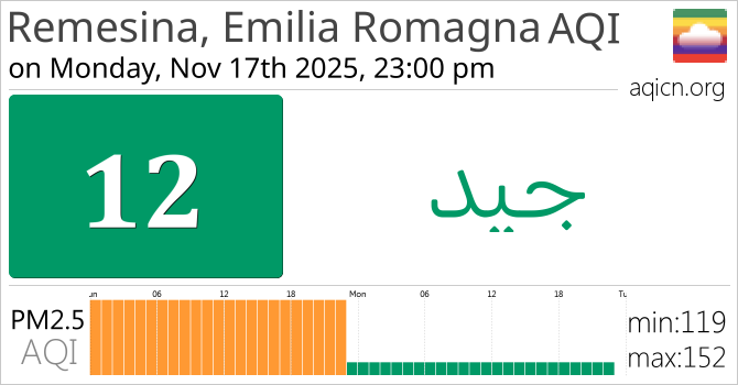 جودة الهواء في Remesina, Emilia Romagna, Italy هي جيد