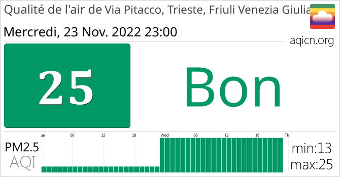 La qualité de l'air à Via Pitacco, Trieste, Friuli Venezia Giulia, Italie est Bon
