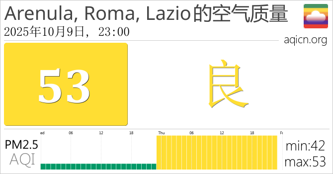 Arenula, Roma, Lazio, 意大利的空气污染指数是良 - 2025年10月9日, 23:00Arenula, Roma, Lazio, 意大利的空气污染指数是良