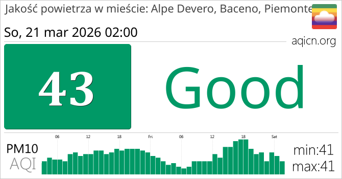 Jakość powietrza w mieście Alpe Devero, Baceno, Piemonte, Włochy jest Good