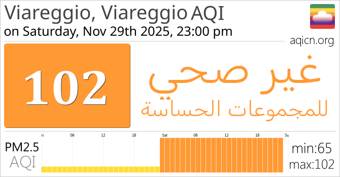 جودة الهواء في Viareggio, Viareggio, Italy هي غير صحي للمجموعات الحساسة