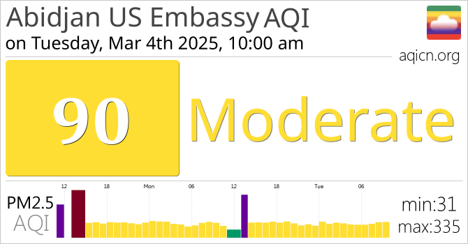Abidjan US Embassy, Ivory Coast Air Quality is Moderate