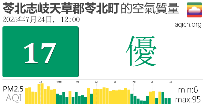 日本苓北志岐天草郡苓北町的空氣污染指數是優
