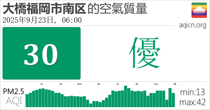 日本大橋福岡市南区的空氣污染指數是優