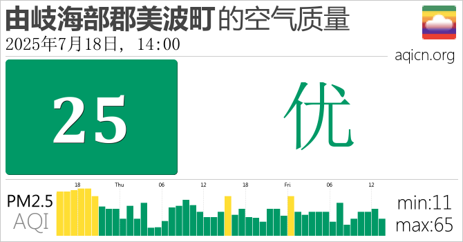 日本由岐海部郡美波町的空气污染指数是优