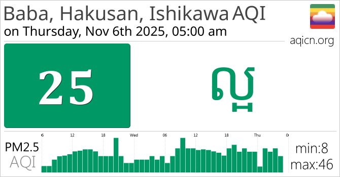 គុណភាពខ្យល់របស់ Baba, Hakusan, Ishikawa, Japan គឺ ល្អ