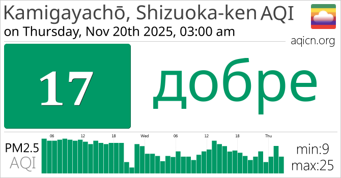 Качеството на въздуха в Kamigayachō, Shizuoka-ken, Japan е добре