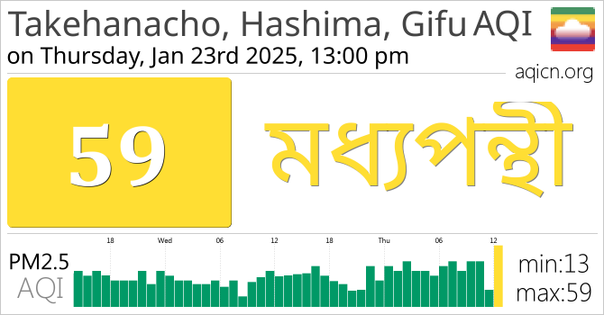 Takehanacho, Hashima, Gifu, Japan-এর বায়ুর গুণমান মধ্যপন্থী