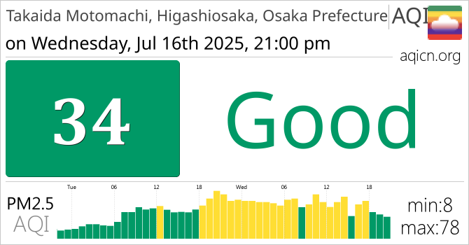 Takaida Motomachi, Higashiosaka, Osaka Prefecture, Japan Air Quality is Good