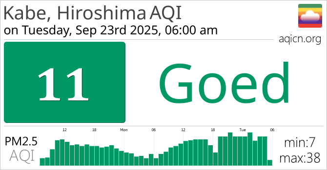 De luchtkwaliteit van Kabe, Hiroshima, Japan is Goed