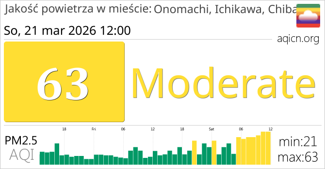 Jakość powietrza w mieście Onomachi, Ichikawa, Chiba, Japonia jest Moderate