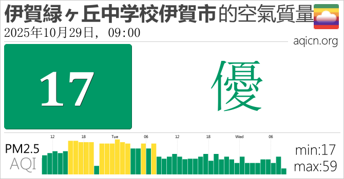 日本伊賀緑ヶ丘中学校伊賀市的空氣污染指數是優
