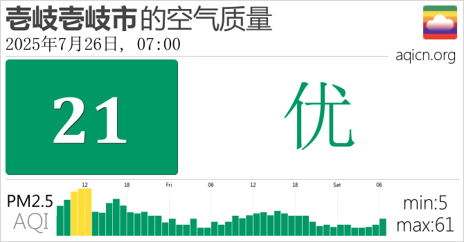 日本壱岐壱岐市的空气污染指数是优