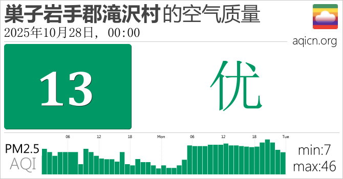 日本巣子岩手郡滝沢村的空气污染指数是优