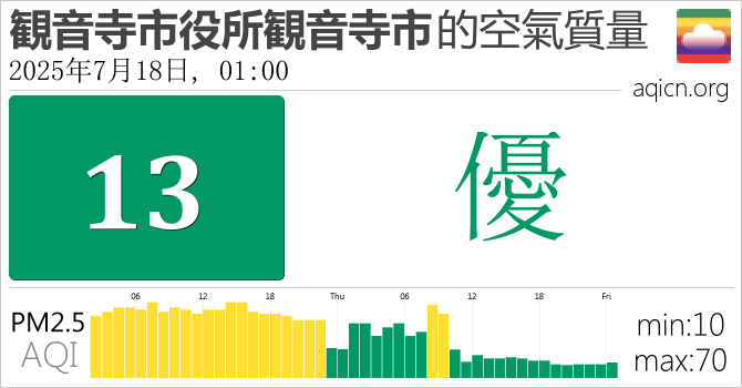 日本観音寺市役所観音寺市的空氣污染指數是優