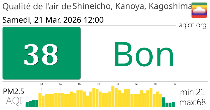 La qualité de l'air à Shineicho, Kanoya, Kagoshima, Japon est Bon