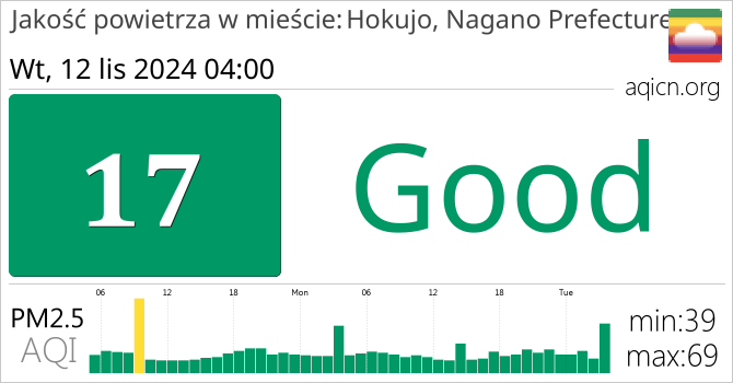 Jakość powietrza w mieście Hokujo, Nagano Prefecture, Japonia jest Good