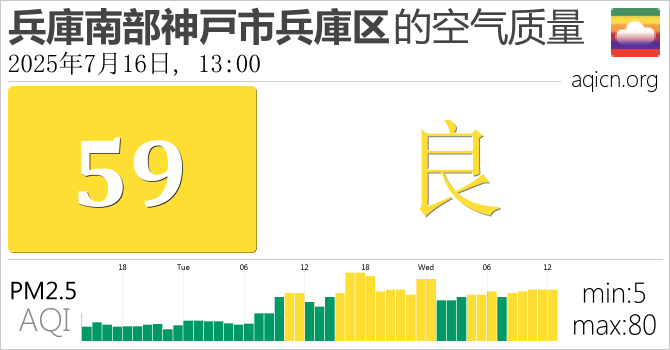 日本兵庫南部神戸市兵庫区的空气污染指数是良