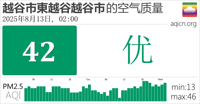 日本越谷市東越谷越谷市的空气污染指数是优