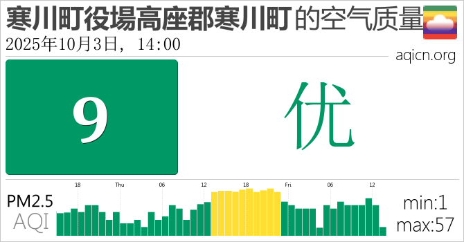 日本寒川町役場高座郡寒川町的空气污染指数是优