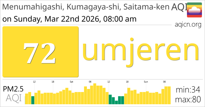 Kvaliteta zraka u gradu Menumahigashi, Kumagaya-shi, Saitama-ken, Japan je umjeren