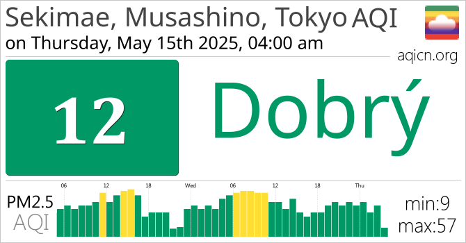 Kvalita ovzduší ve městě Sekimae, Musashino, Tokyo, Japan je Dobrý