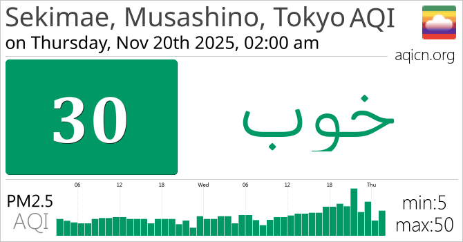 کیفیت هوای Sekimae, Musashino, Tokyo, Japan خوب است