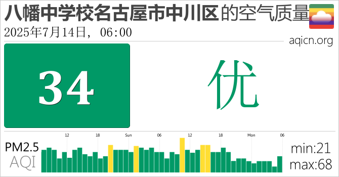 日本八幡中学校名古屋市中川区的空气污染指数是优