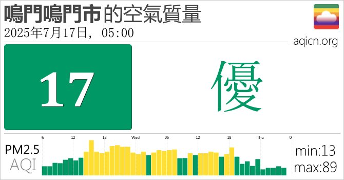 日本鳴門鳴門市的空氣污染指數是優
