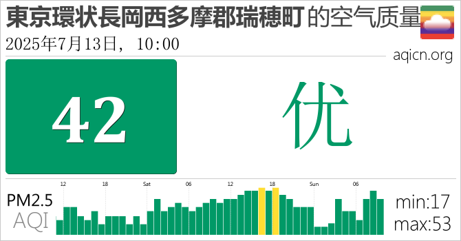 日本東京環状長岡西多摩郡瑞穂町的空气污染指数是优