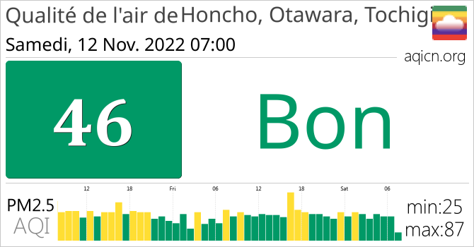 La qualité de l'air à Honcho, Otawara, Tochigi, Japon est Bon