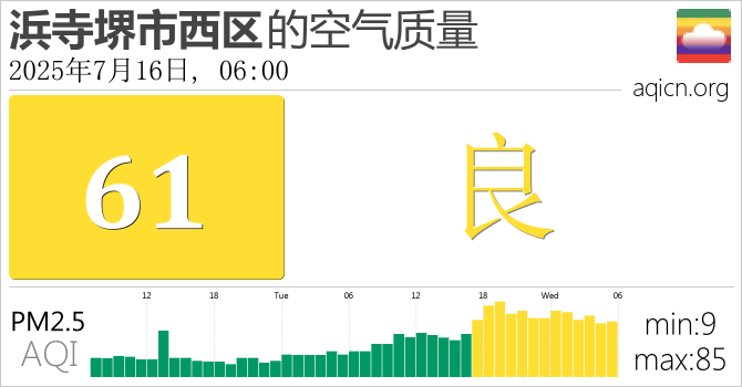 日本浜寺堺市西区的空气污染指数是良